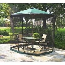 Luxurious white netting with black trim is made of strong military quality mosquito netting material that creates a gazebo affect around your table while you relax and dine free of flying insects. This soft yet durable mosquito netting allows you to enjoy the benefits of a screened porch for a fraction of the cost. The all white netting creats an opulent glow for night-time entertaining. Enjoy outdoor entertaining without the pesky insects. Featured in the 50th anniversary of the Southern Spring Home & Garden Show in Charlotte NC and the Atlanta Home Show 2010.